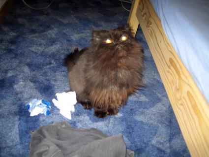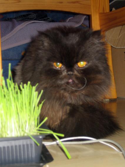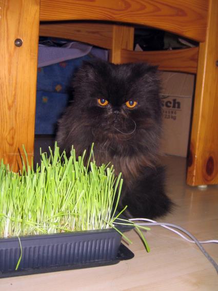 Hier ein paar Bilder von unserer Katze, beide Perserkatzen leben mit unseren Neufis zusammen, und haben damit keinerlei Probleme.